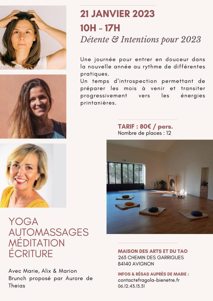 Je suis heureuse d’intervenir lors de cette journée, pendant laquelle je vais proposer une marche méditative suivi d’un atelier d’écriture ayant pour thème Le Sens / La Direction pour 2023.